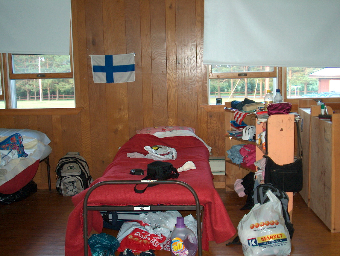 Amerikkalaiset sekä Israelilaiset ohjaajat nukkuivat aina lasten kanssa samassa "punkassa"(bunk), ja me ei-juutalaiset, muiden maiden ohjaajat jaoimme ns. Staff housen. Talossa oli 2 osaa, molemmissa meitä ohjaajia. Tässä on kuva minun pienestä sopestani. Tässä nukuin 9 viikkoa.